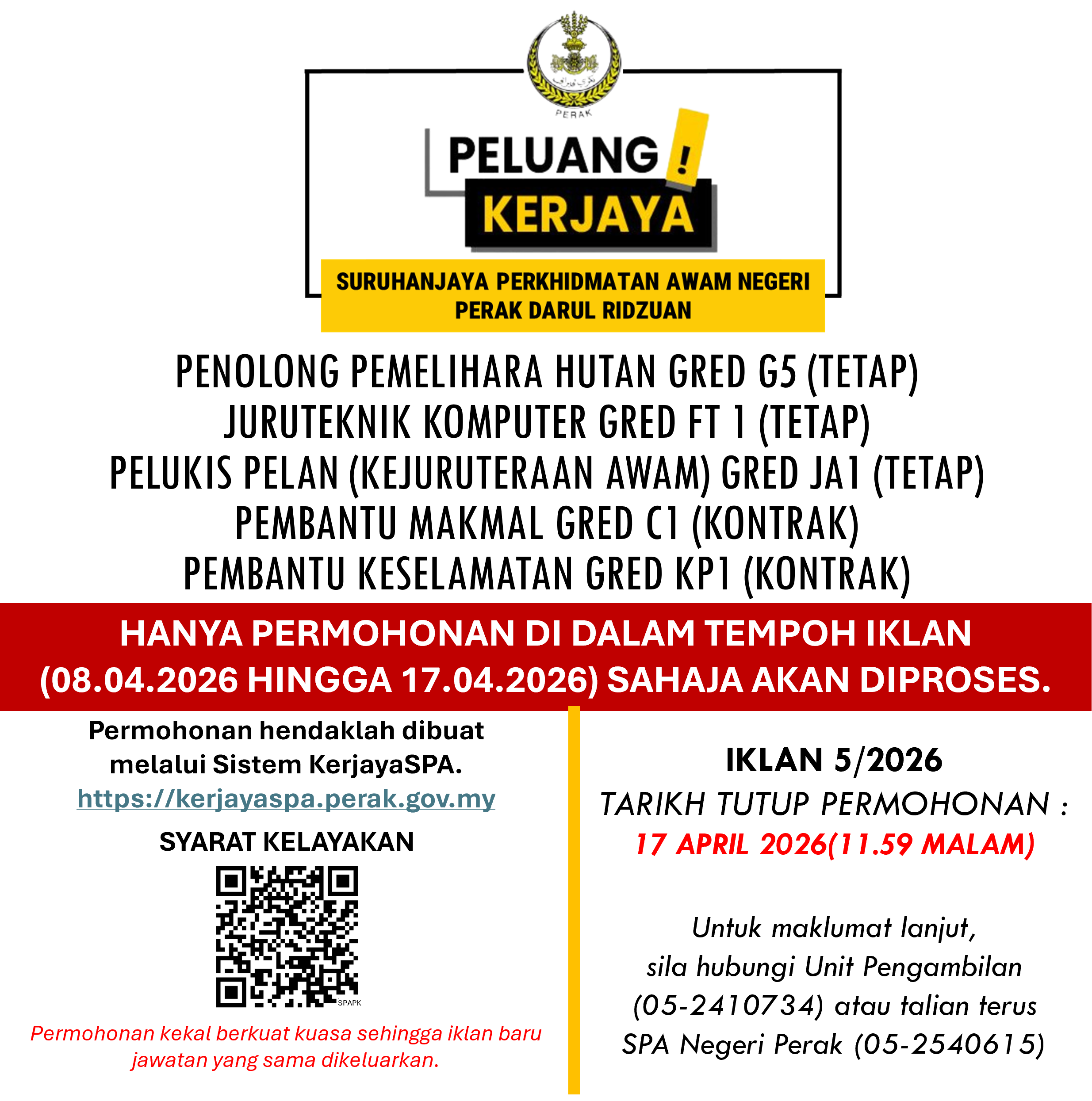 Syarat kemasukan boleh didapati di laman sesawang rasmi SPA Negeri Perak di bawah menu Orang Awam > Syarat Iklan atau melalui pautan https://bit.ly/spapksyarat5.